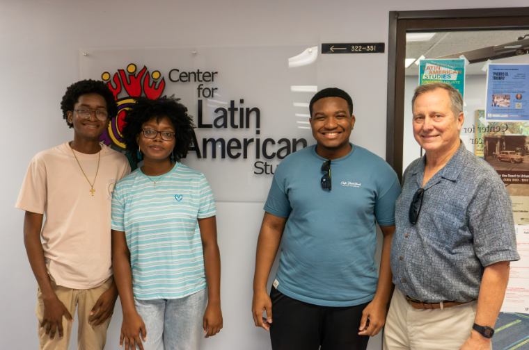 That was the case for Yury Casas, Ferney Mena, and Joshua Murillo, three undergraduate students from Quibdó, Chocó, Colombia, who spent the fall semester at UF through the David Bushnell Scholarship. Yury, Ferney, and Joshua are the inaugural recipients of the scholarship, which exists thanks to the generosity of alum Craig Breese (BA LAS 1973), whose career in international business includes nine years as president of Honeywell Latin America. Mr. Breese established the fund in honor of his former professor David Bushnell, renowned historian of Colombia and professor at UF from 1963 until his retirement in 1991.