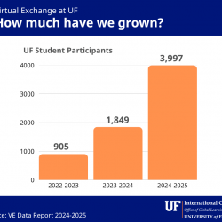 ...The Office of Global Learning is excited to share data on UF student participants in virtual exchange programs for recent academic years. This data reveals that student involvement in virtual exchange has more than doubled over the past academic years, with engagement now spanning a wide range of disciplines across campus. We thank our faculty partners who have taken part in our virtual exchange trainings and have implemented virtual exchange into their course curricula - your efforts have been instrumental in driving this record growth.