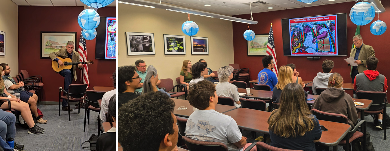 The International Center was honored to host Professor Tremura for a vibrant and engaging presentation on one of Brazil’s most colorful and heartfelt traditions. Professor Tremura, a Ph.D. in Ethnomusicology and faculty member in both the School of Music and the Center for Latin American Studies, also serves as Director of the Brazilian Music Institute, where he brings together students and international artists to explore Brazil’s rich performance traditions.